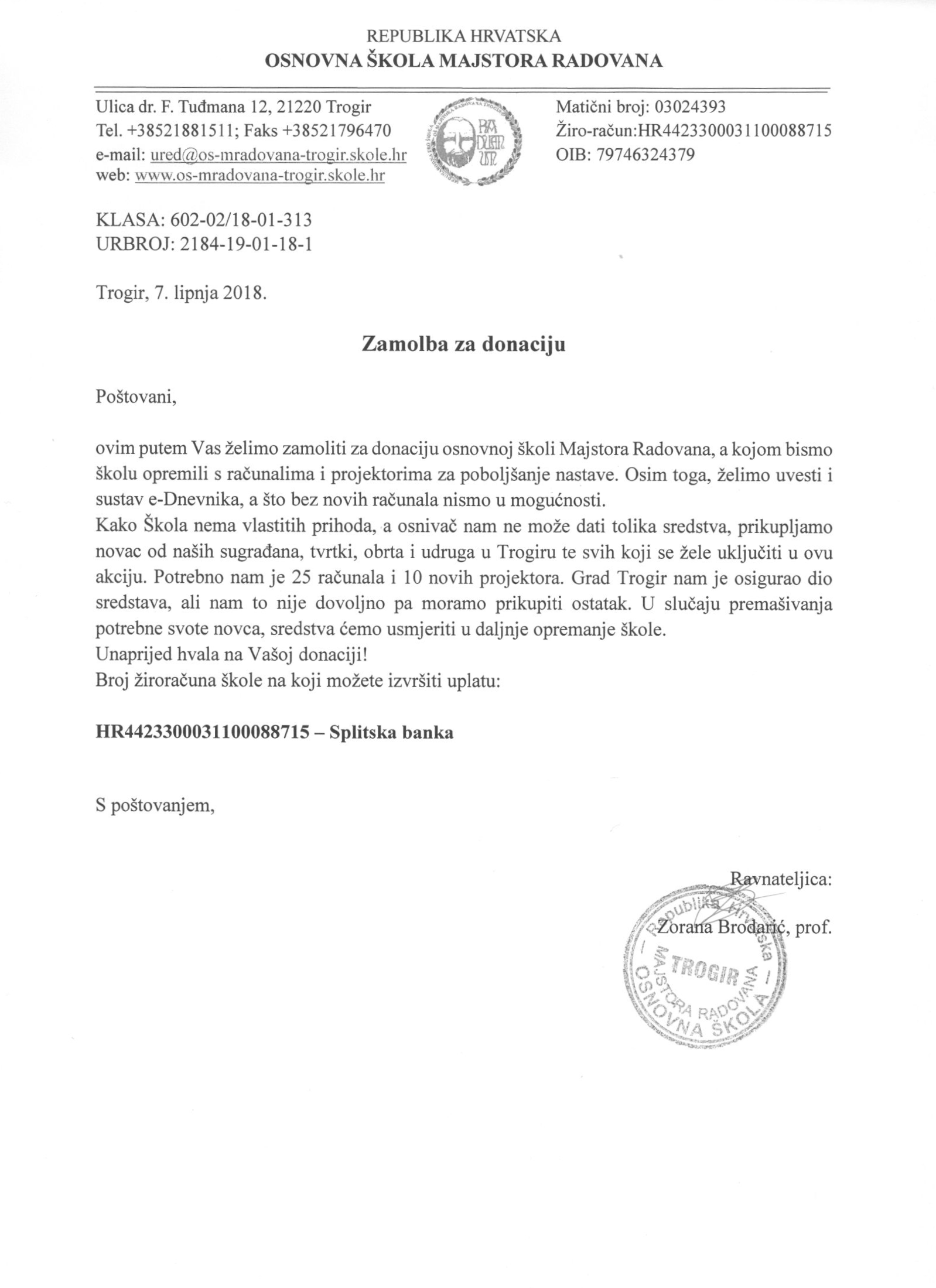 Za dodatne upite obratite nam se putem maila: ured@os-mradovana-trogir.skole.hr